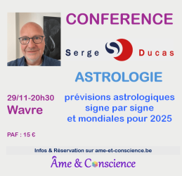 CONFERENCE – LES PREVISIONS ASTROLOGIQUES SIGNE PAR SIGNE ET MONDIALES POUR 2026. Publié dans News. Pour tous renseignements : 0475/ 82 22 50 Lire la suite